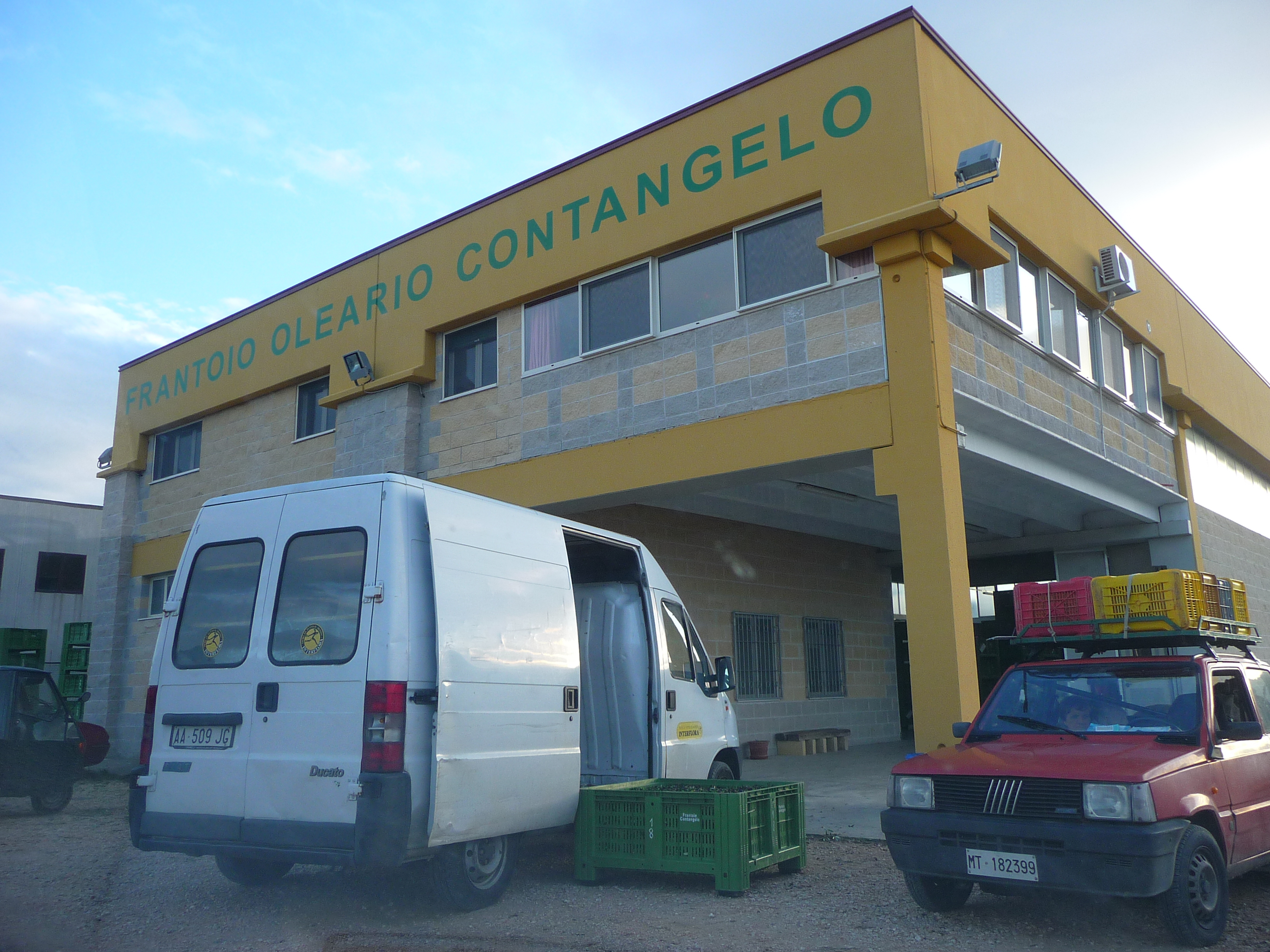 Se, come a volte capita, mi sfrego qualche goccia di olio sulla pelle per ammorbidirla e poi avvicino le mani al viso, vengo catapultata nel piccolo Frantoio Contangelo, il frantoio specializzato in molitura di olive biologiche che Sergio e i suoi compagni di avventura (me compresa) hanno utilizzato per una parte delle olive raccolte.