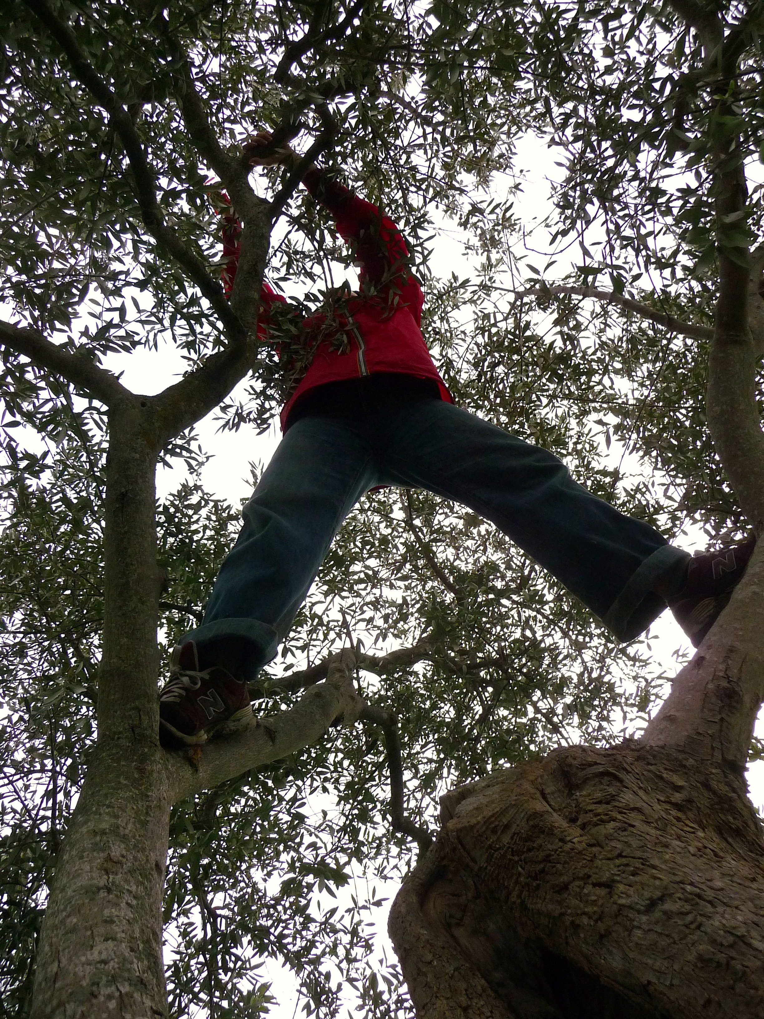 Arrampicarsi su un albero un po’ selvatico e, tra le foglie e le olive (e qualche formichina che si era fatta la casa lì intorno), godermi il paesaggio delle campagne materane dall’alto