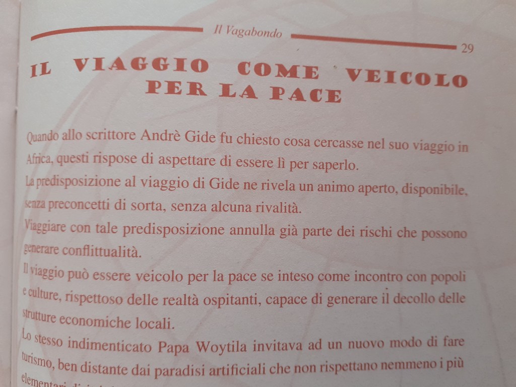 Anni fa, tanti anni fa, con l’associazione “il Vagabondo” abbiamo scritto un pamphlet dedicato ai temi del viaggio e della pace.